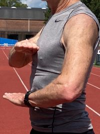 - Put the other hand near your belly button so they create two parallel planes.