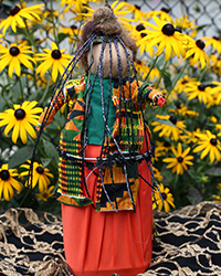 There is also the African Wrap Doll Collection. There are 780 dolls in that collection. Each doll was made by either myself or one of my two sisters who work with me, Felicia and Tammy. When we began this work, each time we visited a classroom, library, school, shelter, museum, wherever, we’d make samples.