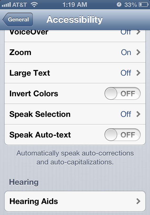 6. If you want to increase the text size while you’re browsing the Internet, go back to Step 4 and click “Zoom” on. Now, by tapping three times on your screen while you’re browsing, you’ll zoom in; drag your three fingers across the screen to increase the zoom and tap three times again to go back to normal view.