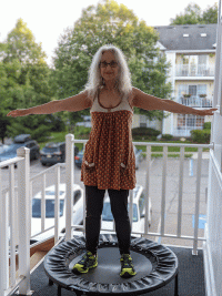 “Teaching the rebounding class on Zoom to our community was the definite highlight of my year as a Senior Planet Sponsored Athlete! (Check out my top rebounding tips here.) Being in service to others is so incredibly rewarding. Seeing the connections that others made with rebounding — bringing out their rebounders from different areas of their home, uncovering and starting to use them again, or purchasing one and even using the rebounder and the stabilizing bar for support to participate in Senior Planet’s online fitness classes — was truly heartwarming and inspiring to me. It has been amazing to see the connections made in our community for improved wellness through rebounding.