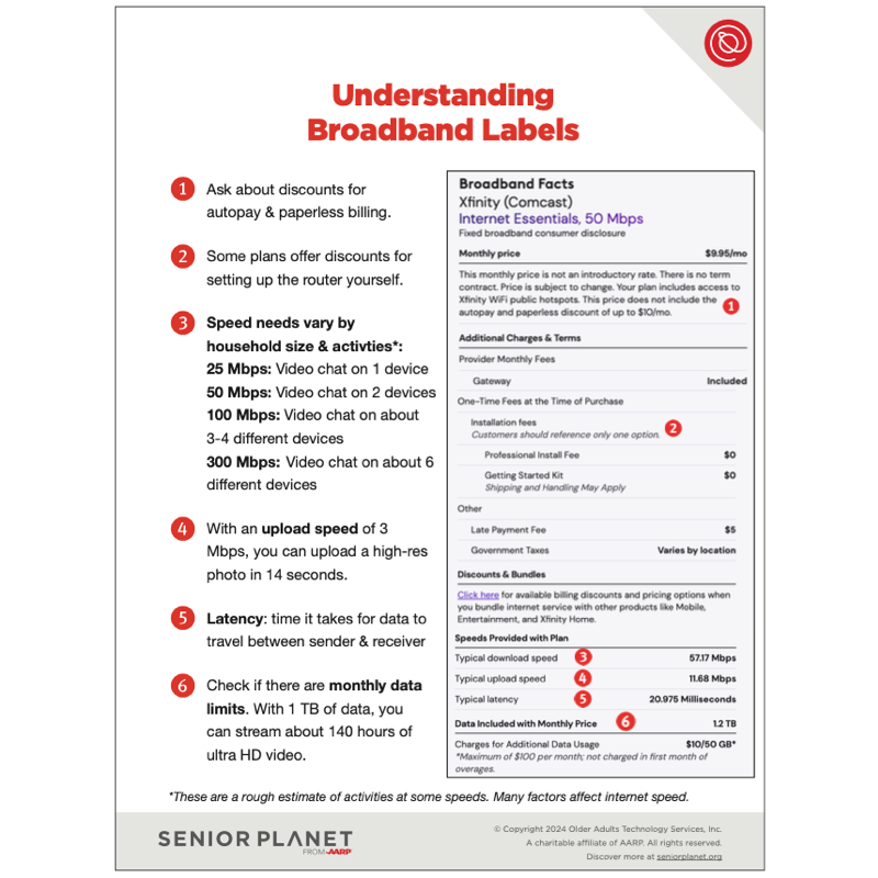 For more information about broadband labels, attend Senior Planet’s Understanding Internet Plans lecture.